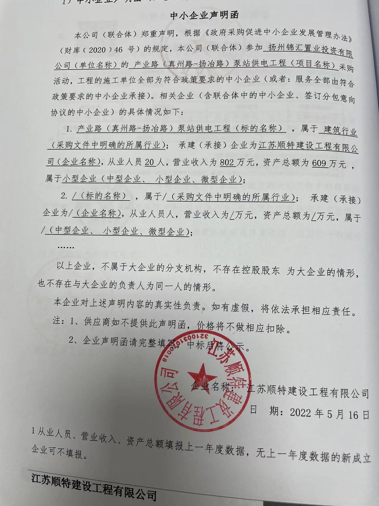 五、評審專家名單:徐敬雯、顧萍、薛玉波 六、代理服務(wù)收費標(biāo)準(zhǔn)及金額:本項目按4200元支付采購代理費用 七、公告期限:自本公告發(fā)布之日起1個工作日。 八、其他補充事宜:無。 九、凡對本次公告內(nèi)容提出詢問,請按以下方式聯(lián)系。 1、采購人信息 名 稱: 揚州錦匯置業(yè)投資有限公司 2、采購代理機構(gòu)信息 名 稱:揚州筑苑工程招標(biāo)咨詢有限公司 地 址:揚州市潤揚北路19號 聯(lián) 系 方 式:0514-87116778 3、項目聯(lián)系方式 項目聯(lián)系人:李斌 電 話:0514-87116778 2022年5月17日 企業(yè)申明函.jpg